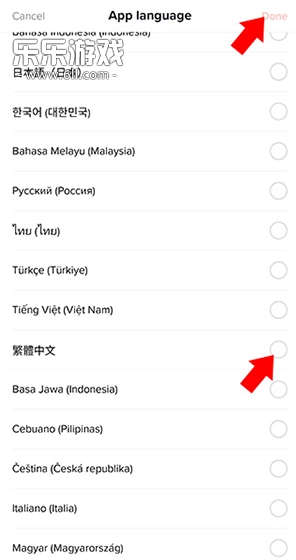 在打开的语言选择界面将语言切换为繁体中文,之后点击右上角Done选项即可