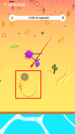 2、通过虚拟摇杆操控角色移动,点击攻击键挥舞武器击败对手。
