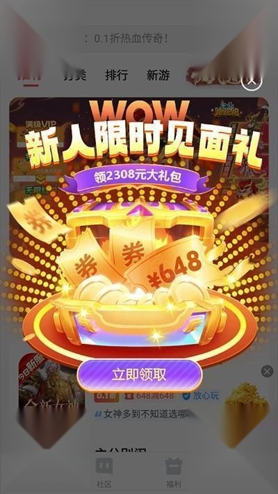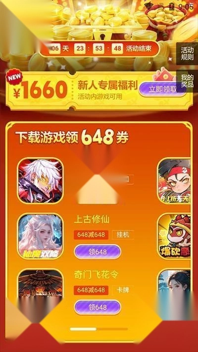 4、还有海量新人福利,游戏领648券