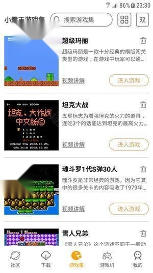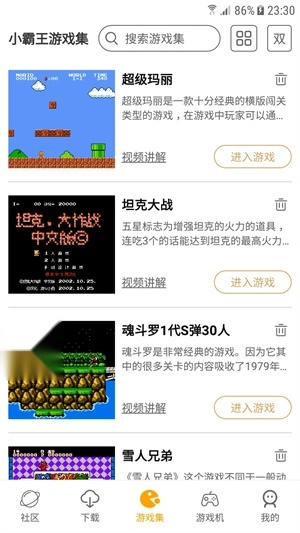 小霸王模拟器汇聚了海量经典小游戏,用户能够自由挑选体验。它具备多种可切换的操作模式,还支持存档功能,充分满足用户畅快游玩的需求。该软件的按键均可自定义设置修改,所汇集的各类游戏无需安装就能直接体验。此外,软件支持不同语言,能满足不同地区用户的需求。感兴趣的小伙伴,欢迎来本站探索。