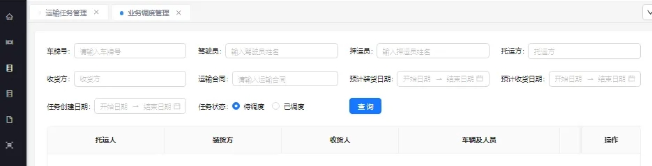 危货运输企业电子运单创建完成后,点击【电子运单管理】-【业务调度管理】页面列表中,进行业务调度工作。