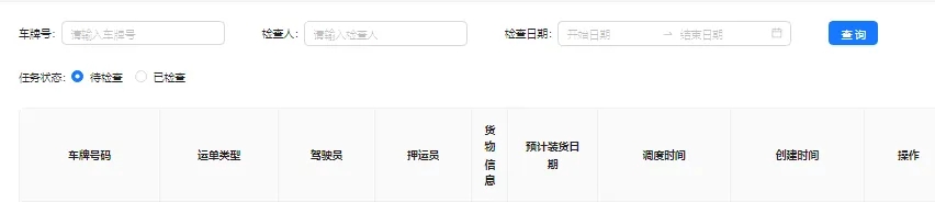 危货运输企业电子运单业务调度完成后,点击【电子运单管理】-【安全检查管理】页面列表中,进行安全检查工作。