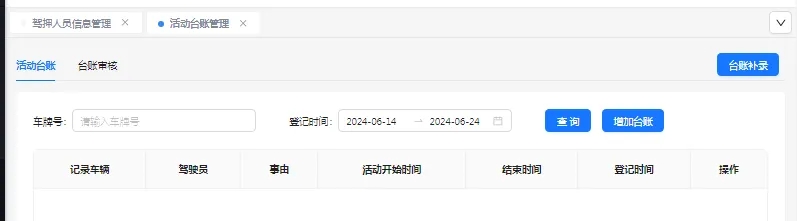 危货运输企业点击【企业日常管理】-【车务管理】-【活动台账管理】页面列表,车辆空车行驶,不产生危货运输,可以在列表对活动台账进行添加、修改、取消、任务复制及查询。