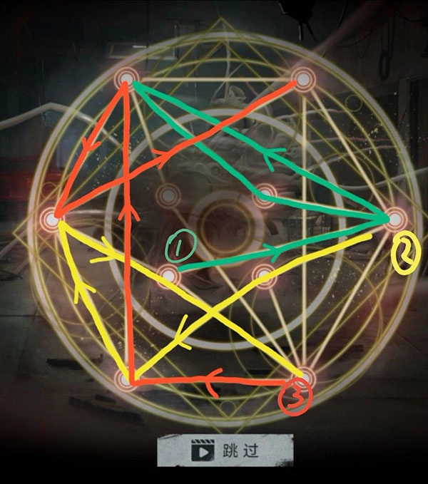 在第五章中,卡洛琳用手杖对波飞天意面(×),需要玩家在短时间内一笔画出魔法阵,共三图,三图时间共享,路径不能重合,对新手玩家来说还挺难的。
