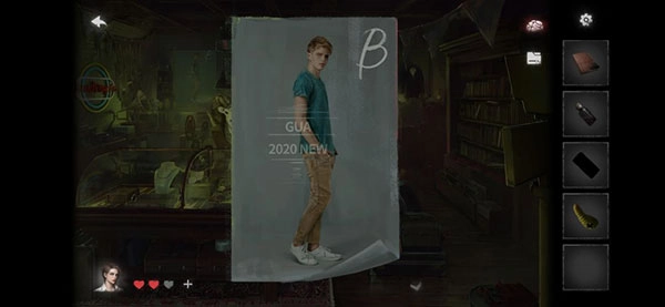 5、到电脑前刷卡,解开衣服店的门。衣服店可看到海报Δ(黄色上衣,红色裤子)。根据三张海报完成小游戏,获得白色围巾。