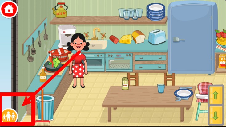 2.点击左下角家庭图标可切换人物角色进行互动或控制不同成员探索家中不同区域解锁更多故事内容。