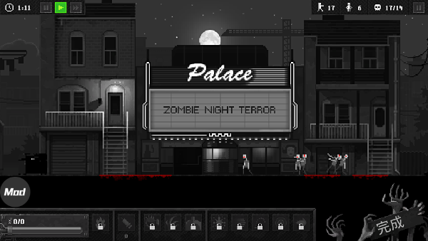 1、该游戏有特别的多的模式,每种模式中还包含特别多的玩法,下面进入第一个知名感染模式,选择电影恐怖夜,这个关卡目标是感染3个人类,然后杀死14个人即可挑战成功,接下来点击绿色的播放键开始游戏吧。