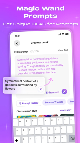 WOMBO Dream 正致力于将艺术推向大众。无需画笔、铅笔或其他任何艺术用具,你仅需一个创意,就能创作出精美的艺术品。不妨退一步,让 WOMBO Dream 成为你艺术创作的得力画笔。