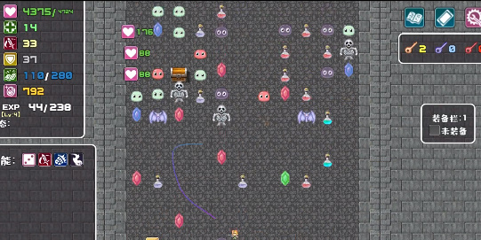 1、游戏结合肉鸽、消除和爬塔等玩法元素,丰富的娱乐内容和特殊物品,在不断游玩的过程中持续变强。