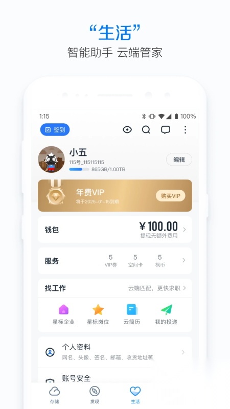 115网盘专注云存储,是一款安全稳定、高效智能,能与用户相伴一生的数字生活平台,能够帮助用户保存海量信息化数据,并可实现数据多端同步、文件随存快取;在基于数据安全存储的基础上,还提供了智能管理、趣味空间、生活服务等功能。