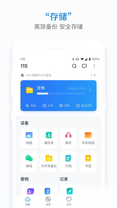 115网盘是一款提供智能高效数据存储与管理服务的网络硬盘应用,包括文件、设备、密档和记录等功能。它拥有庞大的长期存储空间,能够轻松保存您一生的数据,并支持随时随地访问和管理各个终端上的个人资料。