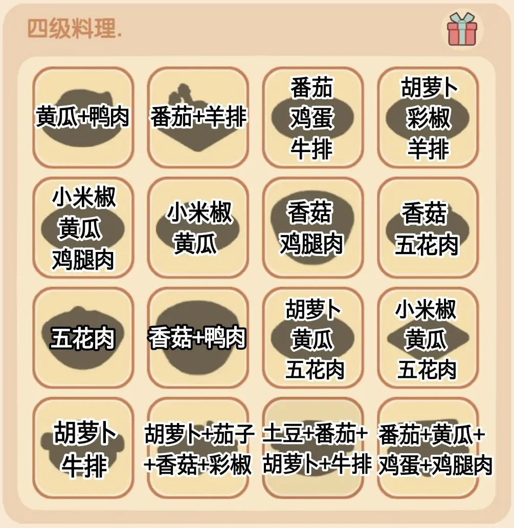 温馨提示:版本更新后菜谱有所调整,若您发现所需材料与攻略不符,请谨慎尝试。如玩家发现菜谱有误,请及时指正,楼主会尽快进行修改。
