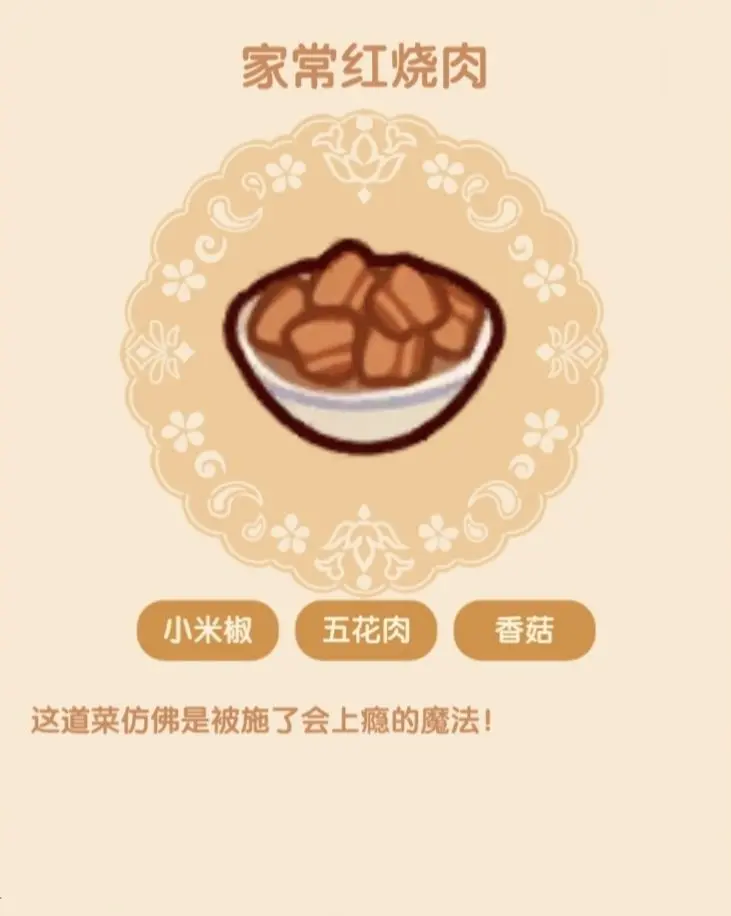 家常红烧肉:五花肉+小米椒+香菇(新/玩家提醒)