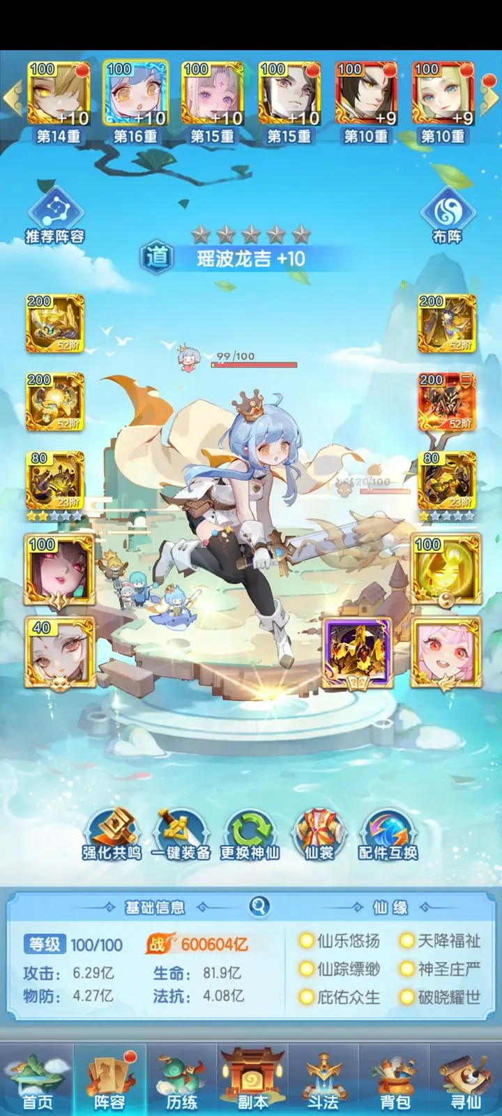 上面的纯族阵容玩几个月后,琉璃、金霄神仙其中一个3星了,就可以开副族搞混搭了。
