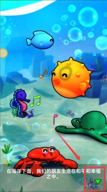 1进入游戏主界面后,点击中间闪烁的“开始游戏”按钮,随后画面将转换至深海探险场景,并伴有气泡浮动的声音效果。
