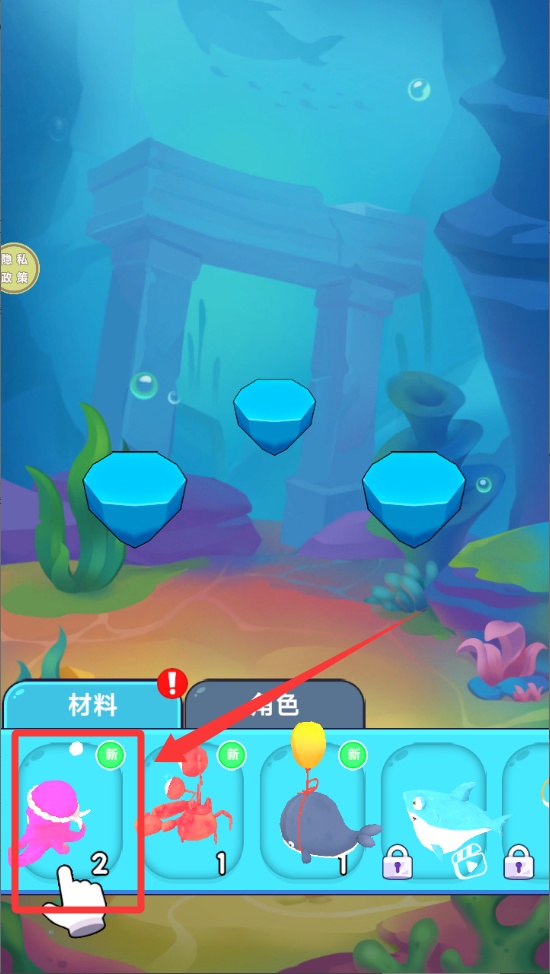 3、从左侧角色栏中选择第三位的粉色章鱼,它的触手会做出可爱的摆动动作表示已被选中。