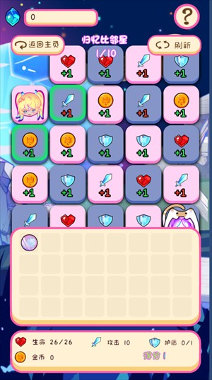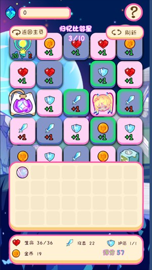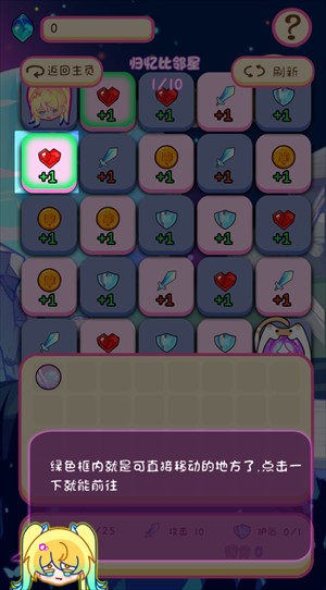 3、走格子机制:玩家在一个5x5的地图上点击格子移动,需要策略性地规划路径,收集资源和战斗。