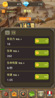 3、优先完成游戏角色的攻击类属性升级强化,将敌人击败获得奖励。