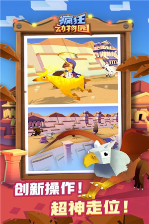 疯狂动物园是一款结合了动作跑酷和模拟经营的3D像素休闲游戏。玩家将扮演一名牛仔,在全球各地展开冒险,面对种类繁多的小动物,使用手中的套绳尽情捕捉,并将它们带回飞船上名为“空中动物园”的地方进行饲养。此外,还可以对动物园进行升级改造,打造属于自己的最独特动物园!