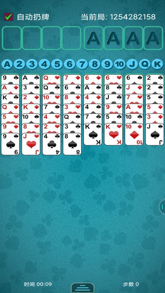 2.栏框分布:游戏界面包含四个本位栏框和四个空白栏框。本位栏框为放牌位置,纸牌A可立即放入,其他同花色的牌则按从小到大顺序叠放。空白栏框为临时放牌位置,每个栏框都可放一张纸牌。