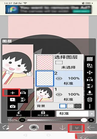 3、小编导入了一张樱桃小丸子的照片,点击图中红框处,新建一个图层。