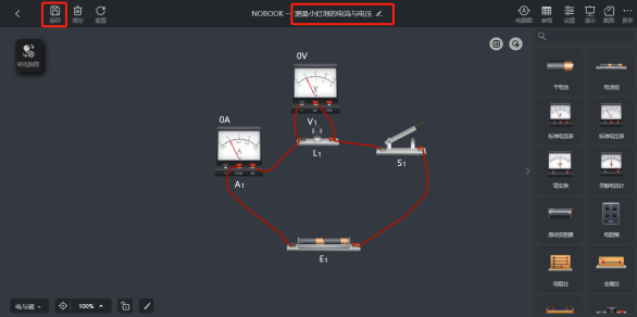 4点击标题可更改实验名称,输入想要保存的名称后,点击“保存”按钮,就能将实验保存至个人资源中。
