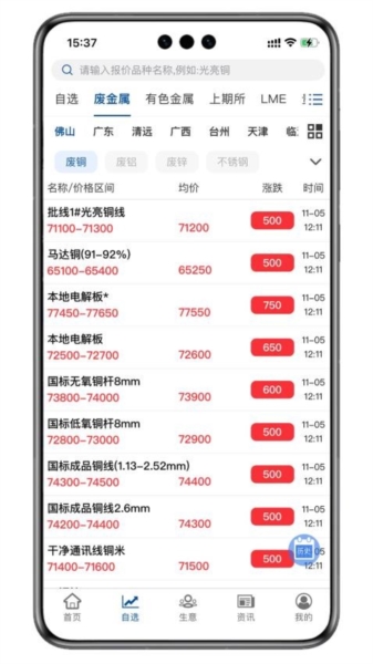 云金属是由佛山市兆创网络科技有限公司开发的一款非常实用的期货交易应用。该软件汇集了多种金属的市场报价,用户可以随时掌握价格波动情况,从而使金属交易过程更加简便。此外,软件还会向用户推送最新的行业资讯,帮助您实时获取相关信息,以便抓住有利时机进行交易,从而获得更高的收益。用户还能通过软件发布个人需求,系统将根据这些需求推荐合适的交易伙伴供用户挑选,进一步简化交易流程。欢迎有需求的朋友下载使用!