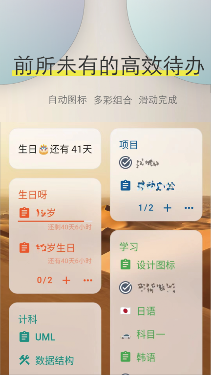 Ticking是一款在日常生活和工作中都非常实用的应用,它提供了丰富的笔记、待办事项等功能。在这个平台上,用户可以持续记录各种待办事项、倒计时和倒数日等信息,这将极大地提高工作效率。同时,它也能帮助你把生活中的事务管理得井井有条。相信你会爱上它的!