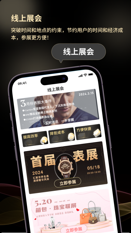 云奢展是一款专注于二手奢侈品交易的社交平台,汇集了多种类别的二手奢侈品,种类繁多且信息详尽。每天都有新品实时更新,用户可以通过图片、文字和视频全方位了解所关注的二手奢侈品的具体情况。如果想咨询价格或其它问题,可以直接在线与商家沟通。此外,该平台还会定期组织新品发布会及主题展览等活动,对二手奢侈品市场感兴趣的用户可以来此探索最新的市场趋势和消费者需求。