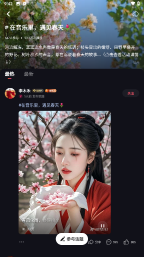 快歌是一款强大的AI音乐创作平台,让你能够随心所欲地编辑和创作自己喜爱的音乐,从而成为一名音乐高手。该软件具备一键作曲、图片转音乐等功能,并且还提供了音乐话题讨论区以及音乐MV等内容。这些丰富的工具使得音乐创作变得更加轻松便捷。此外,在这里你还可以聆听到各种类型的优美歌曲,包括古典、摇滚、国风、英文、韩语及流行等多种风格,满足不同用户的听歌需求。