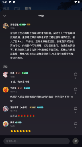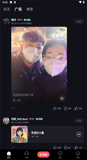 这里还有超多的宝藏歌单,让你快速的发现喜欢的音乐类型,休闲时光中让音乐伴你左右。这里还有超多的音乐视频,以及交友广场,你可以在这里感受音乐魅力,也能够关注喜欢的人,和其他人在评论区互动,发布喜欢的作品。不管你喜欢创作还是喜欢听歌,都可以来这个平台,带给你崭新的音乐体验。快来这里体验吧!