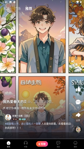 1、快歌为更多的音乐爱好者打造,在这里可以创作出更多的音乐,自由设计音乐曲谱等。