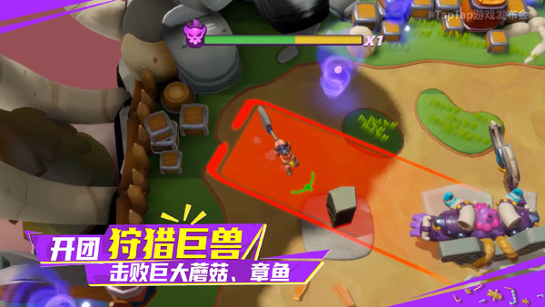游戏继承《野蛮人大作战》的3v3v3经典玩法和搞怪逗趣的角色形象。单局6分钟,即开即打。多阵营乱斗,酣畅淋漓。用地图里的冰蘑菇、火蘑菇投掷敌人,还能产生奇妙效果。吃吃吃,砍砍砍,欢乐无穷超乎想象!