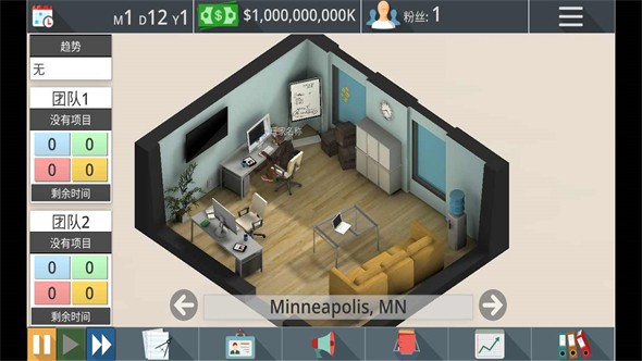 2、开创你自己的一个小办公室,发展你的游戏业务,拥有7个建筑,管理50名员工,同时带领3个独立的游戏开发团队开发不同的项目!