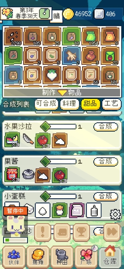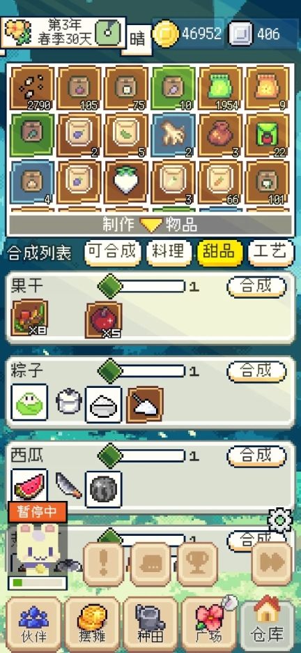给作者一个建议:如果还没有购买相应的工具,但满足了基础材料要求的合成项目能不能也隐藏起来?比如没有买铁砧,但是每次都会跳出盾牌的合成选项,这确实有点影响游戏体验。
