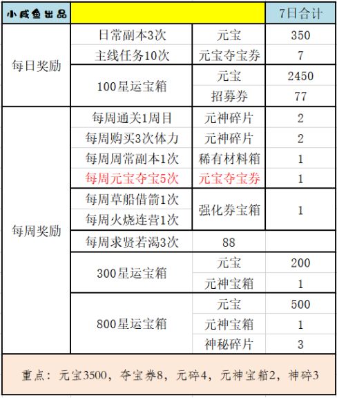 由于每日求贤的超低性价比,每周求贤也不纳入推荐,那么每周星运的其他5个,均可以白嫖完成(元宝夺宝是获取演义残卷的唯一途径,必刷!何况每周都可以白嫖7+1个),每个任务25星运,刚好弥补每日星运第2种情况下95星运的空缺。