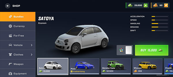 5、左侧选择给自己选择一辆爱车,每一种款式的车辆都可以改变颜色哦。