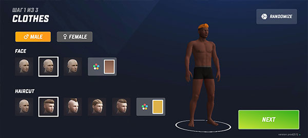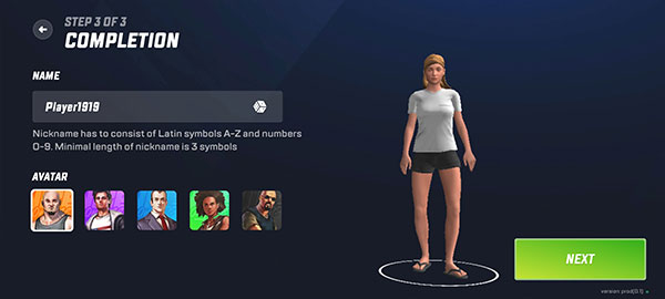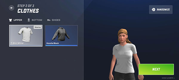 2、给角色选择一套衣服,可以作为初始的免费服装,确定好后点击NEXT进入下一步。