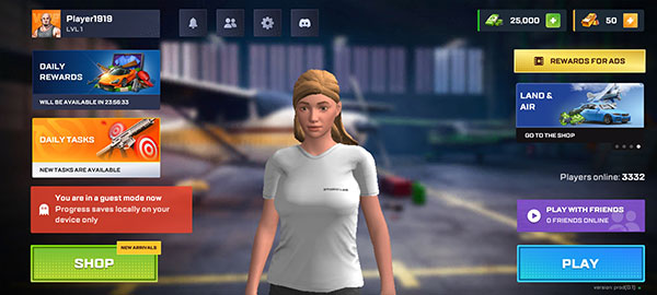 4、然后正式进入游戏界面,左上角是昵称信息,右上角是当前的资金,点击左下角SHOP进入商店。