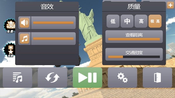 1、为了满足不同玩家对于挑战难度的要求,打开“设置”,可以针对游戏画质、行人和车辆的数量进行调节,其中行人和车辆的数量越多,挑战难度越大,反之行人和车辆的数量越少,挑战难度越小。