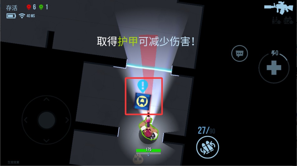 3、一旦发现发光的护甲,应立即前去拾取,因为它能有效减少伤害并保护生命,非常重要。注意,护甲有耐久度,如果被打坏了记得要及时更换新的。
