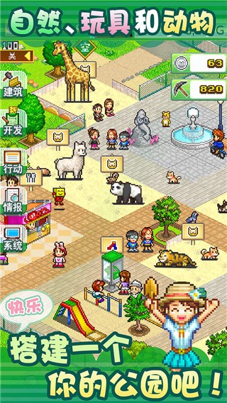 发现动物公园是一款采用像素画风的动物园模拟经营游戏,延续了开罗游戏一贯的卡通风格和轻松愉快的游戏氛围。在游戏中,玩家将扮演动物园园长的角色,通过不断扩展园区、改善设施、吸引更多游客来提高动物园的知名度和收入,最终将其打造成为世界著名的顶级动物园。