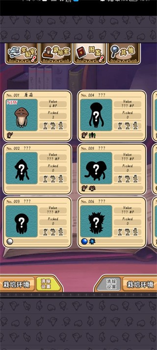 2.在《NEO菇菇栽培研究室》中,还有着图鉴玩法,感染了病毒的蘑菇会产生异变,变化成为各种不同的外形,玩家可以在众多滑子菇中排查出来加以收藏。