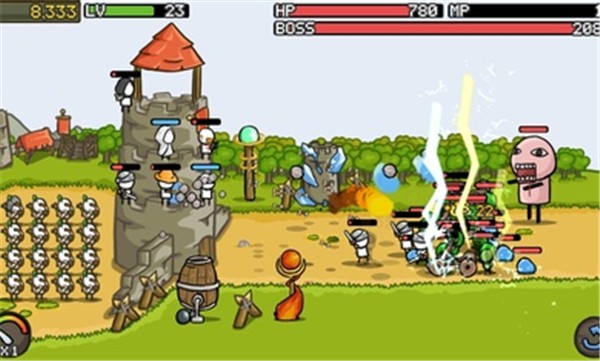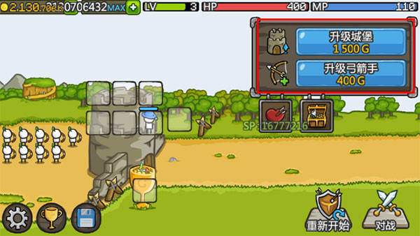 3、通过不断的升级城堡、训练士兵、建造塔楼就可以轻松通关了。