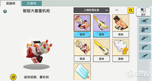 冒险家也可以在武器库右侧的分栏中按武器类型找武器皮肤哦,这样的话就不怕会分不清楚啦!
