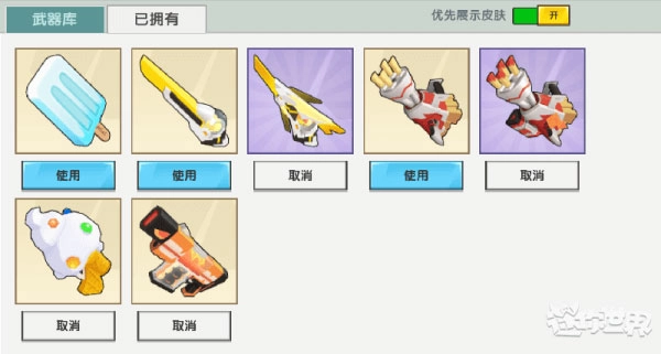 同时,如果开启了“优先展示皮肤”开关的话,则会在各个模式内优先展示皮肤,如关闭则在地图内优先展示微缩模型哦!当冒险家“穿”好武器皮肤之后,进入游戏内切换到不同的武器,就会显示对应的皮肤啦。是不是很简单咧!
