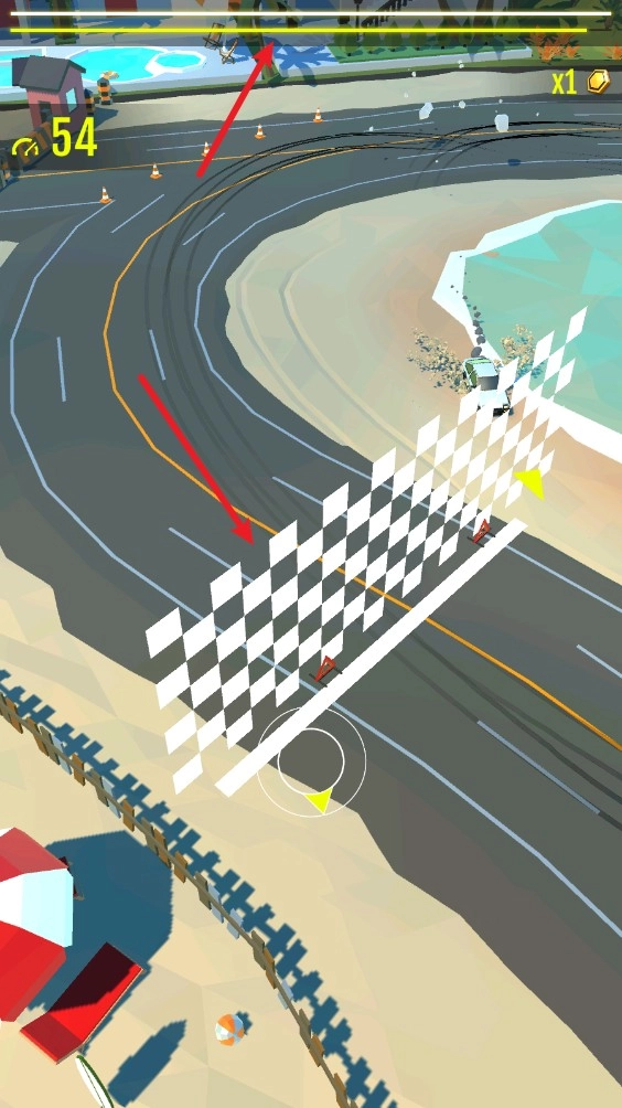 1. 玩家进入游戏后,需借助圆盘操控赛车的移动方向。