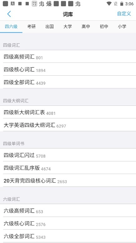 2、然后需要进行词库的设置,这里以四级高频词汇为主;
