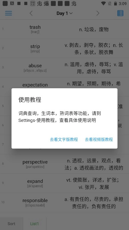 7、点击右上角则可以查看清单,快来一起背单词吧!