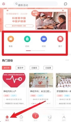 3、通过底部“活动”按钮,查看即将来临的医疗活动。